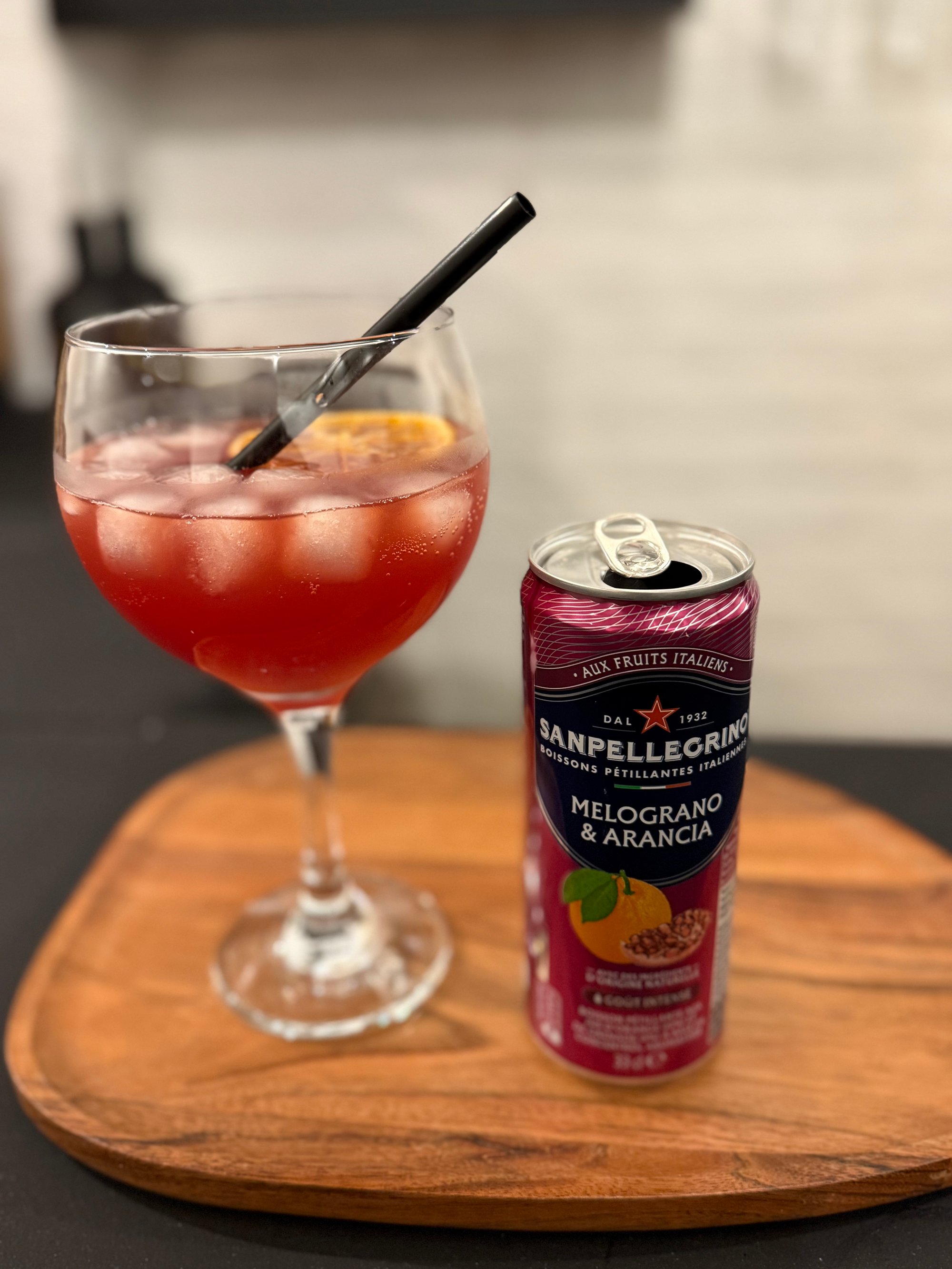 4 blikjes San Pellegrino Melograno & Arancia – een sprankelende mix van granaatappel en sinaasappel